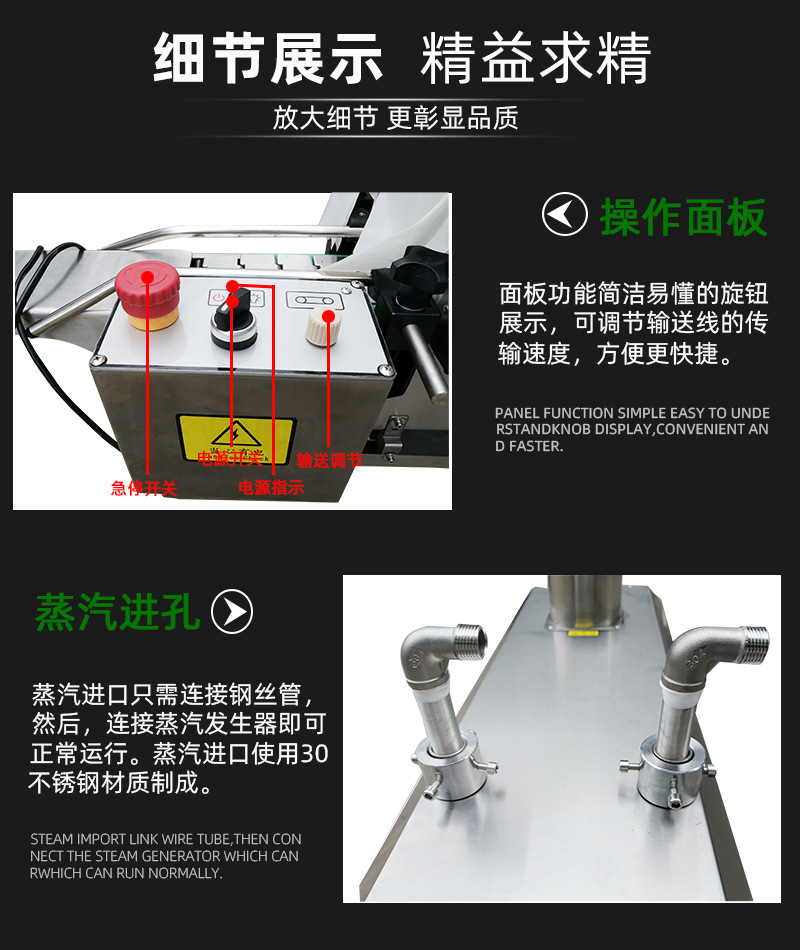- 操作簡便:通常配備簡單易懂的操作面板,操作人員可以通過面板輕松設置蒸汽溫度、壓力、輸送帶速度等參數,不需要復雜的培訓就能掌握操作方法。而且機器的維護相對簡單,降低了使用門檻。
