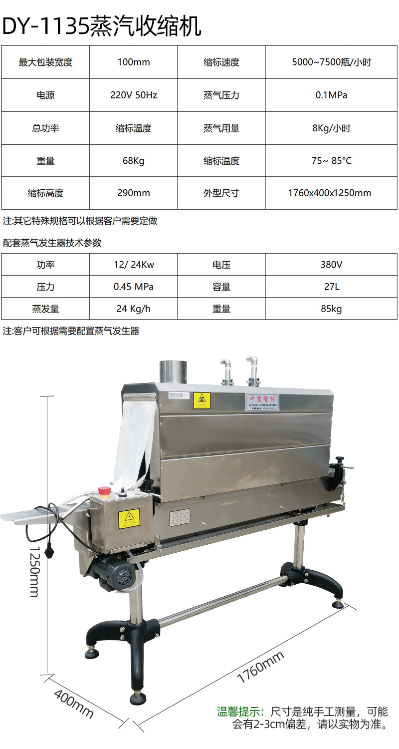 - 環(huán)保性能較好:相對于一些使用化學溶劑的包裝方式,蒸汽收縮機主要利用蒸汽作為熱源,減少了對環(huán)境有害的化學物質(zhì)的使用。