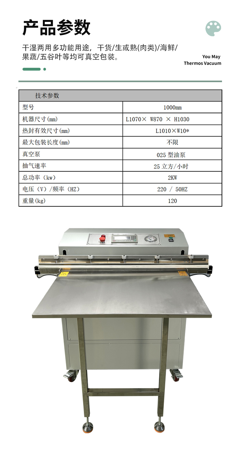 - 對于肉類,如豬肉、牛肉、羊肉等生鮮肉類,氣動外抽真空包裝機可以有效防止肉類與空氣中的氧氣接觸,減緩氧化過程。氧氣會使肉類中的脂肪氧化變質,產生異味和不良色澤,而真空包裝可以延長肉類的保鮮期,在冷藏條件下,保鮮時間可延長數天至數周。