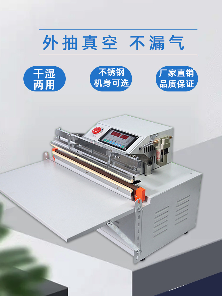 - 密封性能:外抽真空包裝機的整體密封性能對真空度至關重要。如果機器的抽氣室、包裝袋封口處等部位存在密封不嚴的情況,外界空氣會不斷進入,導致抽氣速度變慢,難以達到設定的真空度。