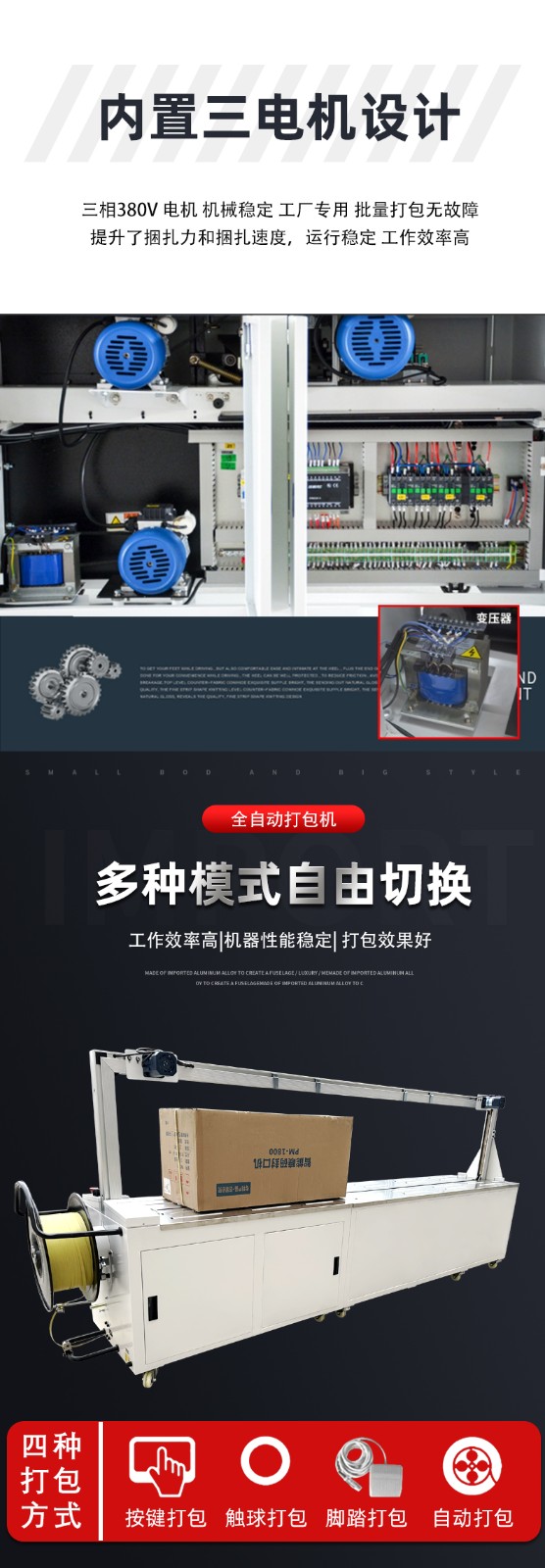 4. 廣泛適用性:可適應各種形狀、尺寸的物品打包,無論是規則的長方體、正方體,還是形狀不規則的物品,都能進行有效打包。同時,能兼容多種材質的打包帶,如塑料打包帶、塑鋼打包帶等,滿足不同行業、不同產品的包裝需求。