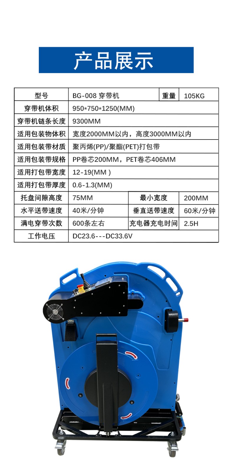 - 打包帶類型:PP 帶成本低、韌性好,適合紙箱等輕貨;PET 帶強度高、耐磨損,適合金屬、建材等重貨,需確認設備支持的帶寬(12-19mm)與帶厚(0.6-1.3mm)范圍。