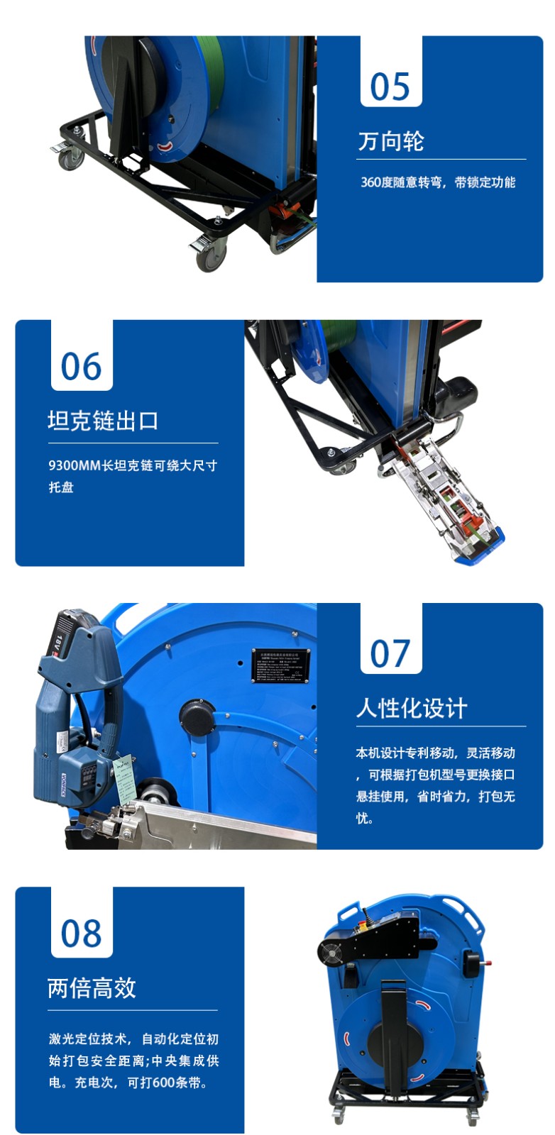 設備圍繞 “貨物 - 托盤一體化固定” 展開,核心功能覆蓋打包全環節,無需人工干預關鍵動作: