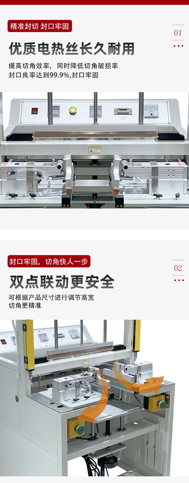 高效快捷:封口速度比傳統(tǒng)設(shè)備快,部分機型每分鐘可完成 50 次精準(zhǔn)封口,能有效提高生產(chǎn)效率。 操作簡便:通常采用一鍵啟動或腳踏開關(guān)控制,操作人員只需簡單培訓(xùn)即可上手操作。 封口質(zhì)量好:采用雙面加熱封口,壓合平整美觀,封口牢固,且封口長度、寬度等參數(shù)可根據(jù)需求調(diào)整。 適應(yīng)性強:可適用于 PVC、PP、POF 等多種材質(zhì)的收縮膜,還能根據(jù)不同產(chǎn)品規(guī)格進行調(diào)整,兼容多種尺寸的包裝材料。 安全性高:部分機型配備急停按鈕等安全裝置,且外觀設(shè)計圓潤,無棱角,可減少操作人員受傷的風(fēng)險。 應(yīng)用場景 廣泛應(yīng)用于食品、化工、電子、醫(yī)藥、日化等行業(yè),可用于對各種產(chǎn)品的包裝材料進行封口和切角處理,如食品包裝袋、日化用品包裝袋、電子產(chǎn)品包裝盒等的封裝。 代表產(chǎn)品 如中堡智能科技實業(yè)有限公司的HX-4018 智能氣動封口切角機、東莞博冠包裝實業(yè)有限公司的氣動封口切角機等,均具有運行穩(wěn)定、包裝速度快、多規(guī)格適配等特點。