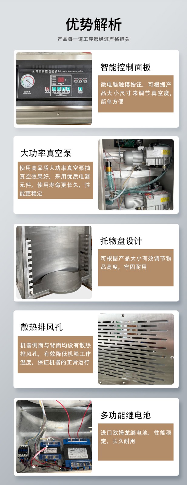 - 確認操作面板指示燈:開機后觀察電源燈、真空燈、封口燈是否正常亮起,若指示燈異常(如閃爍、不亮),需停機排查電路,勿強行使用。