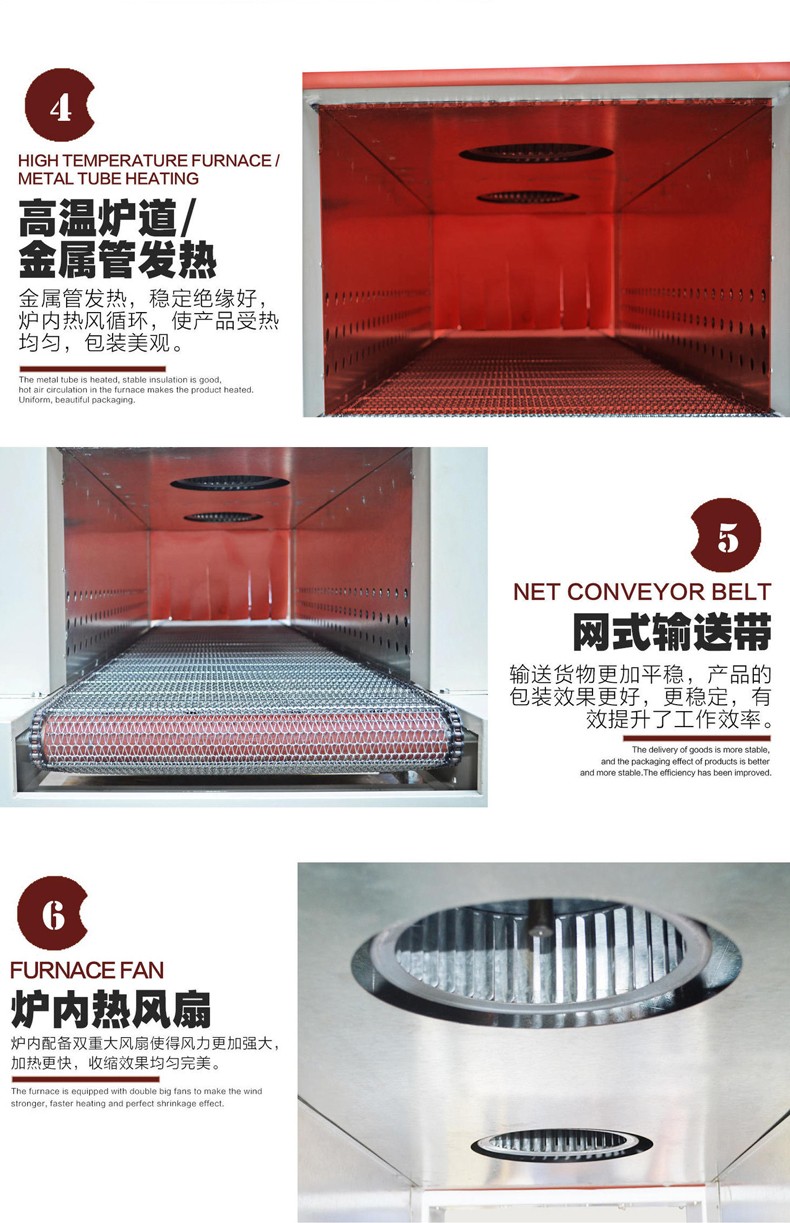 - 適用范圍廣:可以用于包裝各種形狀、尺寸和材質(zhì)的產(chǎn)品。無論是規(guī)則形狀的長方體、圓柱體產(chǎn)品,還是不規(guī)則形狀的產(chǎn)品,都可以通過調(diào)整噴氣口的位置和角度、輸送速度等參數(shù)來實(shí)現(xiàn)良好的收縮包裝。它適用于食品、飲料、日用品、化妝品、五金電器等眾多行業(yè)。