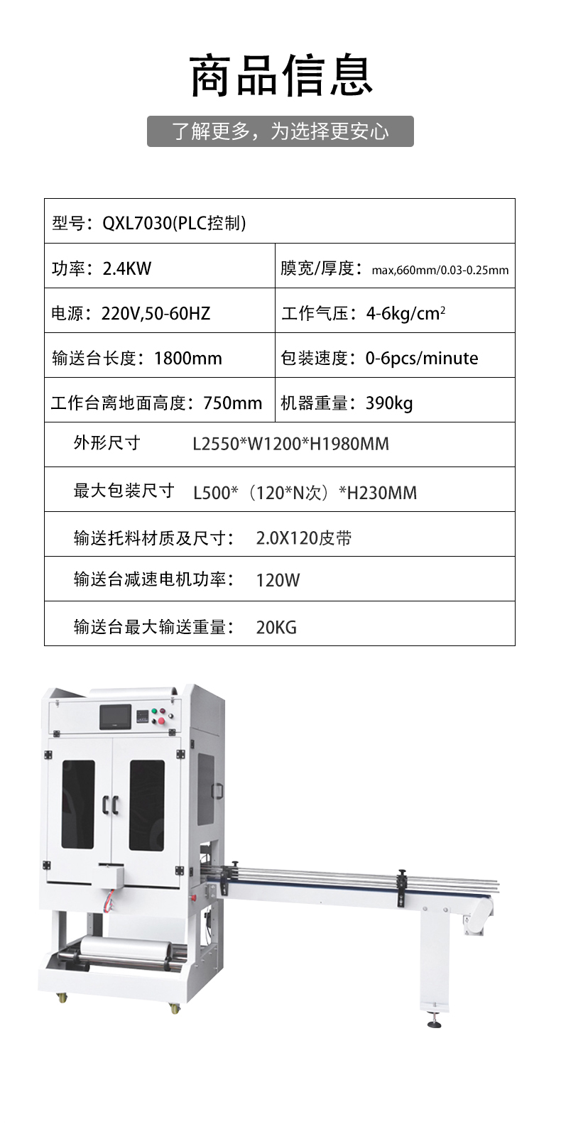 - 高速套膜:具有較高的套膜速度,每分鐘可以完成多件產品的套膜,極大地提高了包裝作業的速度。相比傳統的手工套膜或半自動套膜設備,其效率提升顯著,能夠滿足大規模生產的需求。