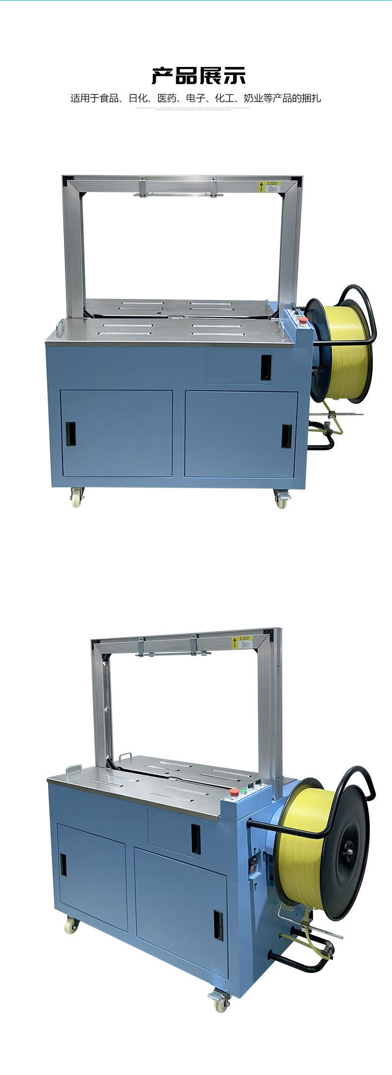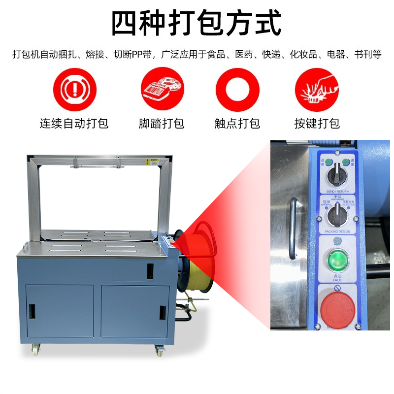 - 自動(dòng)上帶:機(jī)器啟動(dòng)后,會(huì)自動(dòng)從打包帶卷中抽出打包帶,并將其傳送到預(yù)定的位置,準(zhǔn)備進(jìn)行打包。這個(gè)過程無需人工干預(yù),大大提高了工作效率。