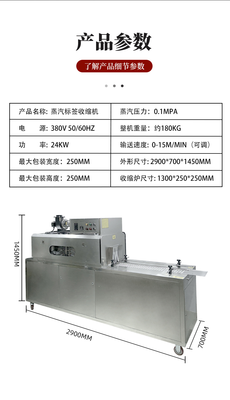 - 食品飲料行業:用于瓶裝飲料、易拉罐、醬料瓶的標簽收縮,蒸汽加熱能避免高溫破壞食品,同時標簽貼合度高,提升產品外觀檔次。