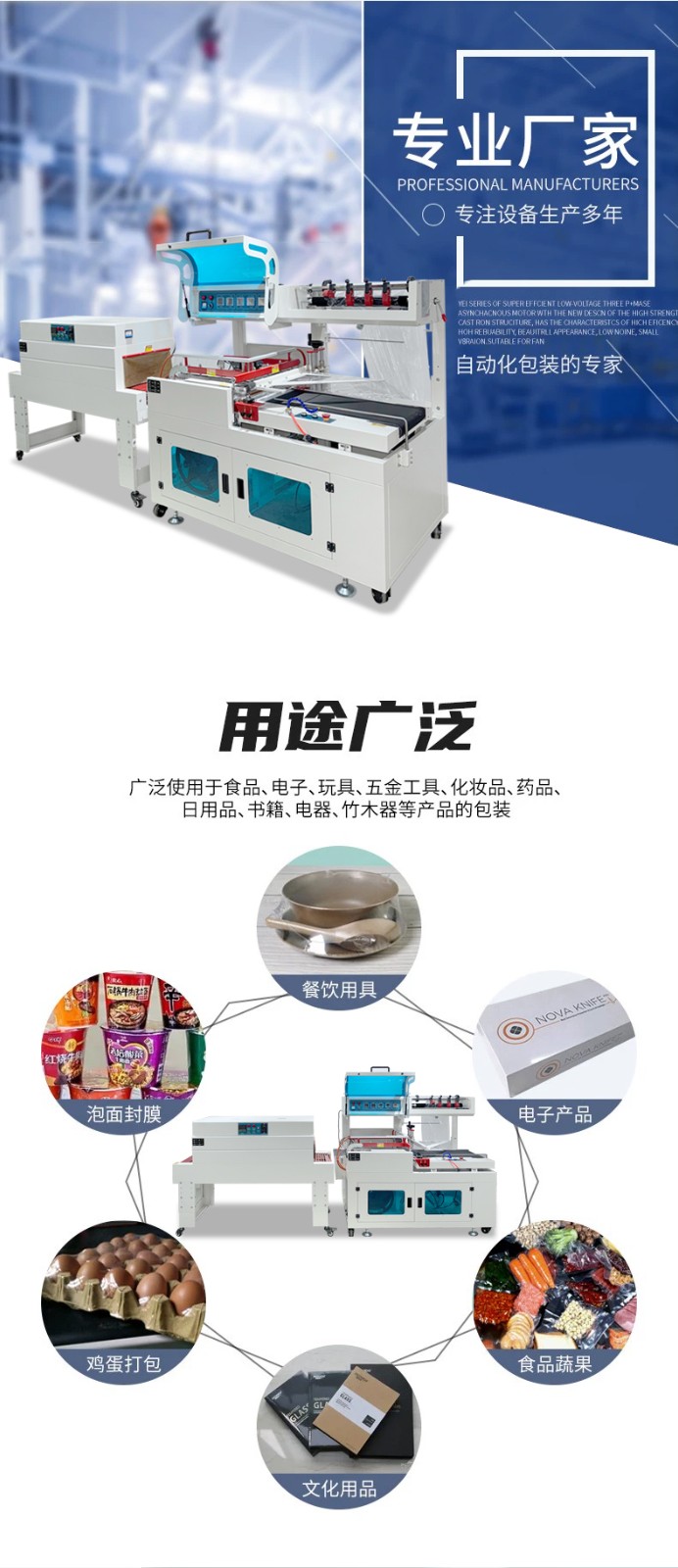 全自動 L 型封切熱收縮包裝機是一款集 “封切套膜” 與 “熱收縮定型” 于一體的自動化包裝設備,因封切機構呈 “L” 形而得名,廣泛應用于食品、醫藥、電子、日化等行業,核心優勢是包裝效率高、密封性好、外觀規整,能快速實現產品的單件或集合包裝,尤其適配規則形狀(如長方體、圓柱體)及中小型尺寸產品。下面從核心工作原理、關鍵結構組成、核心優勢、適用場景、選型與操作注意事項五個維度,全面介紹該設備: