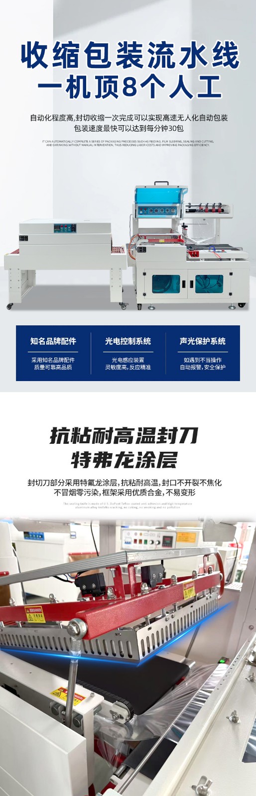 設備通過 “封切套膜→熱收縮定型” 的連續流程,實現產品自動化包裝,全程無需人工干預(僅需人工上料或搭配自動上料線),具體流程如下: